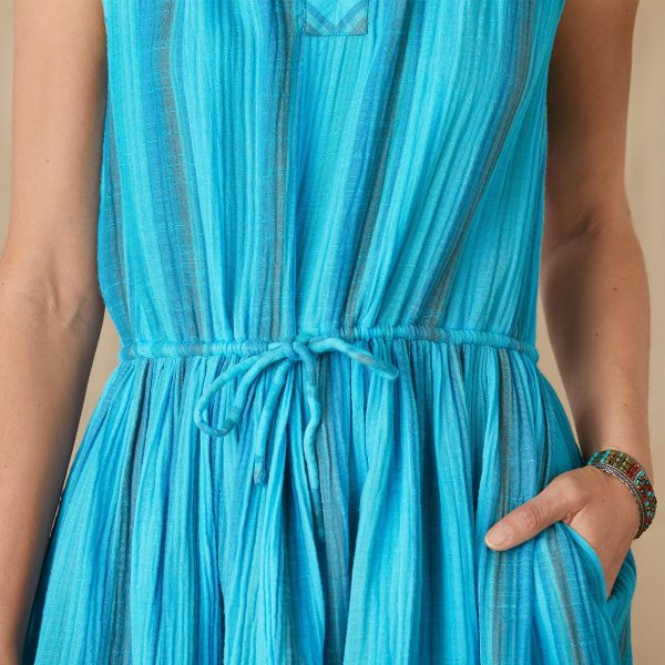 A go-to. everyday dress in stretchy double gauze with notch V-neck. waist tie and pockets. Sleeveless. in beautiful. overdyed yarn dyed hues. Cotton. Machine wash. Imported. Exclusive. Sizes XS (0 to 2). S (4 to 6). M (8 to 10). L (12 to 14). XL (16 to 18). XXL (20 to 22). Approx. 43L.