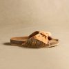 Supple leather swoops in graceful. asymmetrical lines. over extra cushioned. sublimely comfortable insoles and textured. rubber outsoles. Imported. Exclusive. Camel or navy. Euro whole sizes 36-41. 1 heel