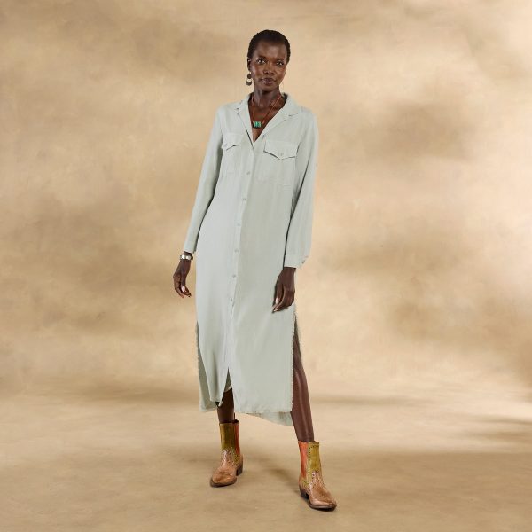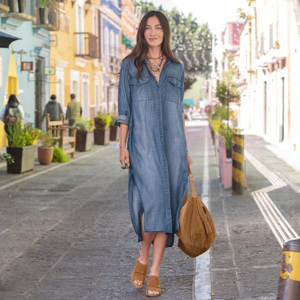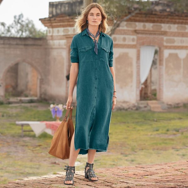 A button-front shirt dress in beautifully flowing Tencel. Two on-seam pockets. two chest pockets. high side slits. roll-tab sleeves. Machine wash. Imported. Sizes XS (0 to 2). S (4 to 6). M (8 to 10). L (12 to 14). XL (16 to 18). Approx. 50-1/2L.
