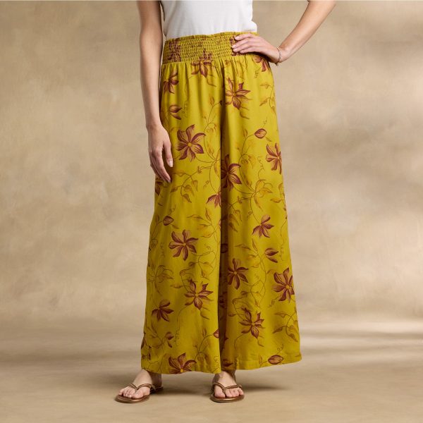 The easiest. breeziest. warm weather pants. with a beautifully draping wide-leg silhouette. big floral print and side seam pockets. Viscose. Machine wash. Imported. Exclusive. Sizes XS (0?C2). S (4?C6). M (8?C10). L (12?C14). XL (16?C18). XXL (20?C22). 29 inseam.