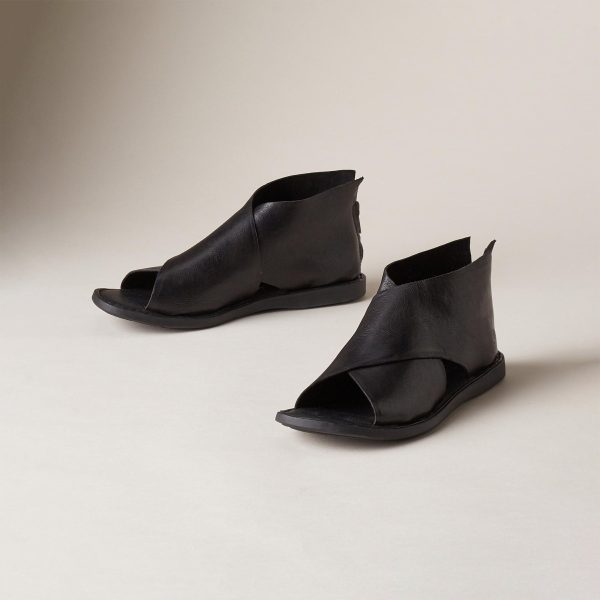 Slip into foot-cradling comfort with the brilliant. crisscrossing design of these soft. wide strap. leather sandals by B?rn?. Extra comfortable with padded insoles. back zippers and flexible soles. Imported. Whole sizes 6-11. 1/2 heel.