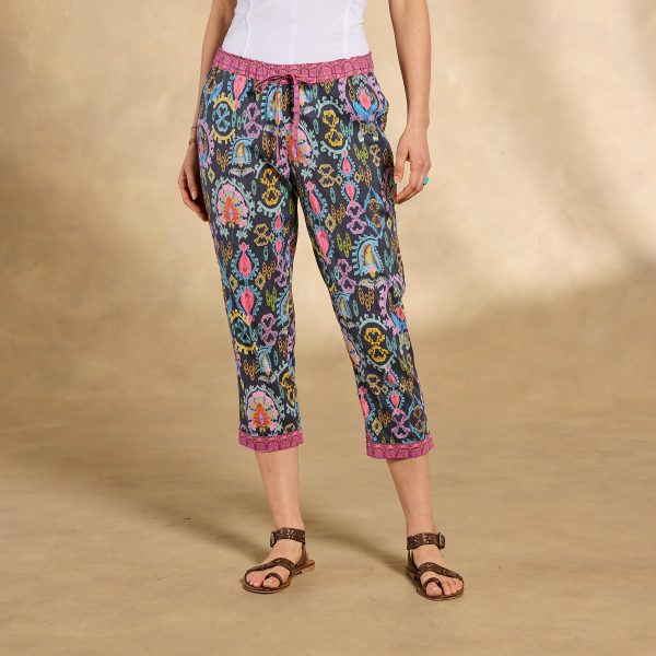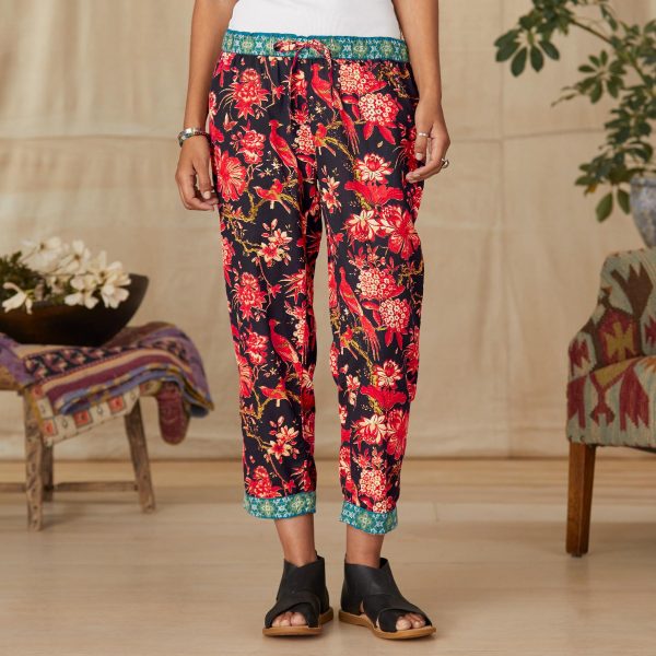 Perfectly comfortable for lounging. yet pretty enough to wear out on the town. Relaxed fit. drawstring pants in a vibrant print. Cotton. Machine wash. Imported. Exclusive. Sizes XS (0 to 2). S (4 to 6). M (8 to 10). L (12 to 14). XL (16 to 18). XXL (20 to 22). 24 inseam.