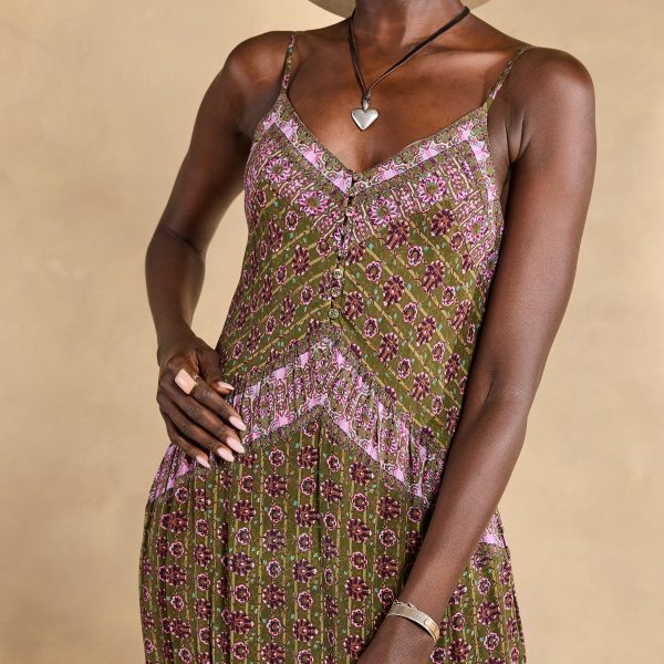 With a name that means supreme leader. our Naidu maxi is destined to become queen of your closet. A flattering V-neck graces the covered-button bodice. while all-over floral and border prints cast the perfect bohemian vibe. Adjustable straps. side seam pockets. side zipper and full lining. Viscose. Machine wash. Imported. Exclusive. Sizes XS (0-2). S (4-6). M (8-10). L (12-14). XL (16-18). XXL (20-22). Approx. 54l.