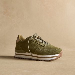 With a retro trainer silhouette. these sneakers feature removable cork insoles with AirFlow system. heel stabilizers for extra support and fish leather detail. Suede/recycled polyester. Imported. Whole sizes 36 (US 5). 37 (US 5.5). 38 (US 6.5). 39 (US 7.5). 40 (US 8). 41 (US 9). Approx. 1.25 heel.