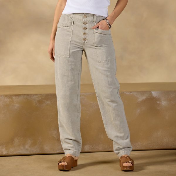 Our relaxed-fit Rivera Pants feature a classic straight-leg fit with a flat-front waist and comfy elastic back??plus pretty ladder lace on the patch pockets. Cotton/linen. Machine wash. Imported. Exclusive. Sizes 2?C16. 28 inseam.