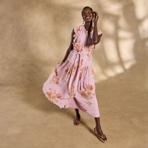 Effortlessly feminine. our Tierra tiered maxi is straight out of a rom-com montage??featuring a demure button front. ruffled neckline and sleeves plus a removable belt. Separate slip. Viscose/cotton. Machine wash. Imported. Exclusive. Sizes XS (0-2). S (4-6). M (8-10). L (12-14). XL (16-18). XXL (20-22). Approx. 53l.
