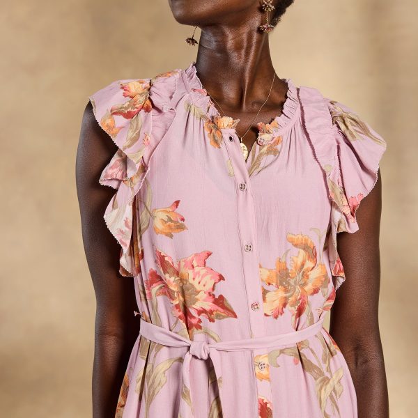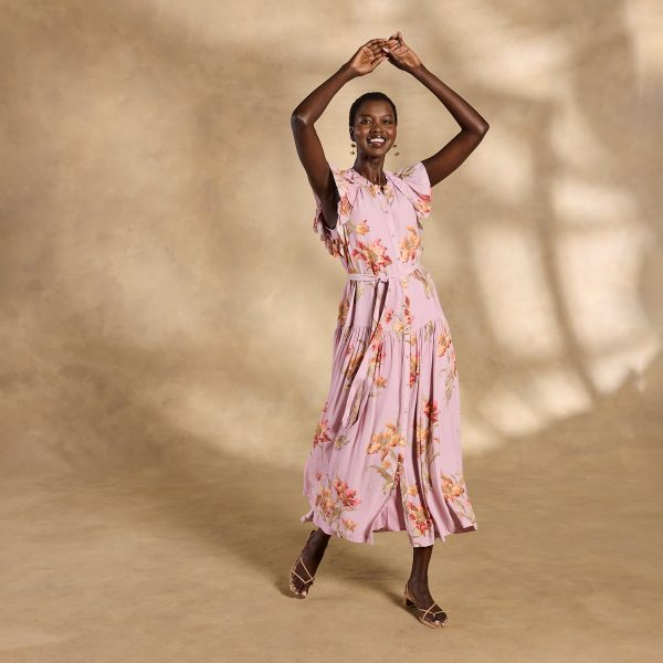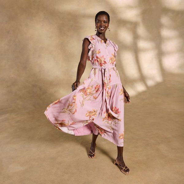Effortlessly feminine. our Tierra tiered maxi is straight out of a rom-com montage??featuring a demure button front. ruffled neckline and sleeves plus a removable belt. Separate slip. Viscose/cotton. Machine wash. Imported. Exclusive. Sizes XS (0-2). S (4-6). M (8-10). L (12-14). XL (16-18). XXL (20-22). Approx. 53l.