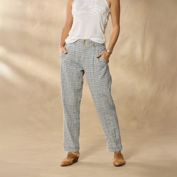 Just when you thought gingham couldn’t get ANY more easygoing. our Vivienne Pants entered the conversation. You’ll live in these pleated garment-dyed pants with a paper-bag waist and welt pockets in front and back. Cotton/linen. Machine wash. Imported. Exclusive. Sizes 2?C16. 27 inseam.