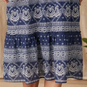 Loose. pop-over style in two contrasting prints reminiscent of a bandana. Open neck with tassels. Cotton. Hand wash. Imported. XS (0 to 2). S (4 to 6). M (8 to 10). L (12 to 14). XL (16 to 18). XXL (20 to 22). Approx. 47L.